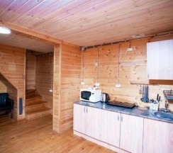 Не понравилось: Плесень в ванной, дырки во внутренней обливке дома, скрипучие полы. отсутствие вещей первой необходимости: аптечки, специй, масло, ножницы, ножи(их всего два и оба тупые, на компанию из 5 человек это маловато). Баня далеко! Минипоселка два и баня есть только в одном, мы очень хотели сходить, но до неё надо было ЕХАТЬ НА МАШИНЕ или идти пешком 15-20 минут.