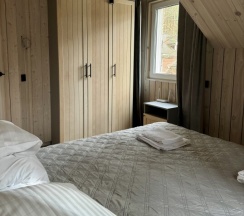 - Второй этаж: одна общая спальня с 4 спальными местами. При необходимости односпальные кровати соединяются в одну двуспальную кровать.