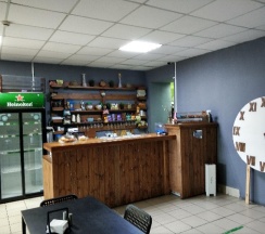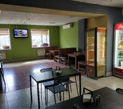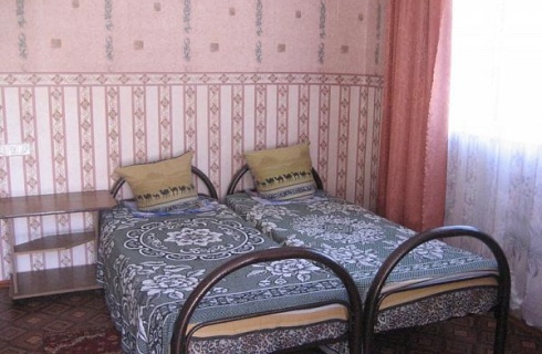 Номер двухместный, две кровати двухспальные. Душ и туалет в номере совмещённые. Чайник, микроволновка и холодильник у администратора. Заселение можно с животными. На территории есть кафе.