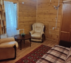 Отличная турбаза, в номере все есть для комфортного проживания...природа просто супер, тишина, птицы поют, реально отдыхаешь душой и телом от городской суеты. Рядом река, тоже очень красивая...вокруг сосновый бор, черничник и я думаю море грибов осенью. Домики расположены далеко друг от друга,никто никому не мешает. Очень хорошо отдохнули,приедем ещё. Я бы посоветовала на территории открыть небольшой магазинчик или столовую,хотя бы на лето...а в остальном все супер.