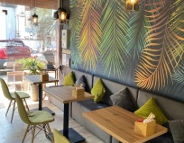 Очень близко море. В пешей доступности сетевые магазины продуктов. Много кафе.