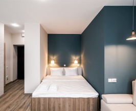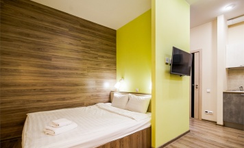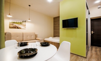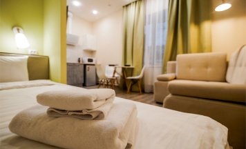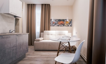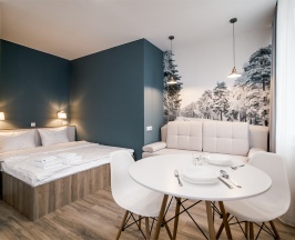 Отличный отель за свои деньги. Хочется отметить удачную планировку: при наличии полноценной кухни, кровати, дивана, стола со стульями, ванной все же номер очень просторный. Все продумано, много мелочей для комфортного проживания несколько дней, интересный и современный дизайн, номер как на фото на сайте. Даже без отопления, несмотря на то, что на улице холодно, в номере было тепло. Рекомендую этот отель!
