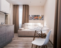 Отличный отель за свои деньги. Хочется отметить удачную планировку: при наличии полноценной кухни, кровати, дивана, стола со стульями, ванной все же номер очень просторный. Все продумано, много мелочей для комфортного проживания несколько дней, интересный и современный дизайн, номер как на фото на сайте. Даже без отопления, несмотря на то, что на улице холодно, в номере было тепло. Рекомендую этот отель!