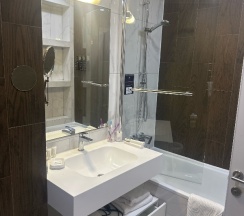 Останавливалась в отеле на 2 ночи с ребенком. Остались только положительные впечатления. В номере свежий ремонт, шикарный панорамный вид, чисто, есть водичка, чай, кофе. Внимательный и заботливый персонал, они вошли в наше положение с малышом и ранним прибытием, спасибо им большое 🫶🏻предоставили стульчик для кормления. Так же очень удобно, что на первом этаже есть супермаркет с готовой едой. Если предоставится такая возможность, то в следующий раз остановимся здесь вновь!