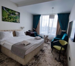 Отличный отель. Как только зашли , сразу заметна была чистота и дизайн отеля 👍🏻 номер просторный , чистый , комфортный. Всё в номере есть. За шумоизоляцию вообще отдельный плюс 👌🏻(наконец-то не было слышно разговоры с других номеров , как в других отелях). Персонал приветлив. В общем , 10 из 10)