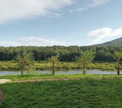 Природа. В домиках чистота, ухоженная территория. Неудобная парковка - автобус не смог заехать