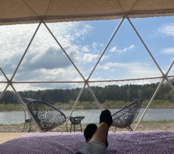 Были в глемпинге очень понравилось , все чисто , уютно , хороший персонал , каждое утро вывозят мусор , везде чистота и красивый вид , бассеин тёплый и чистый , завтрак просто шикарный что очень порадовало , вечером тихо и спокойно не кто не шумел и не слушал музыку , была бы возможность поставить 10 звезд поставил , приедем к вам еще раз обязательно 🫶