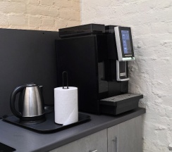 Большой плюс в том, что в общем доступе постоянно кофемашина, чай, сахар.