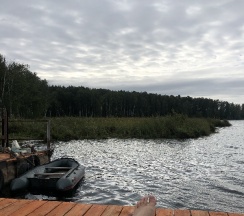 Очень уютное место для отдыха с друзьями. Снимали домик на выходные, и времени, честно говоря, не хватило. В первый день успели пожарить шашлыки, искупаться в озере и сходить в баню. На второй день взяли лодку и катались по озеру, впечатлений море. Удивило, что на территории нет комаров - обработка реально работает. Вечером сидели у костра и наслаждались тишиной, такие места сейчас редкость