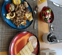 Я два раза останавливалась в этом отеле. Мне понравилось, что я была не в сезон (хотя середина марта - ещё сезон для горных лыж и сноуборда), и было очень тихо, уютно и спокойно в целом. В первый раз меня покорили завтраки - во-первых, шикарный вид из окна столовой-ресторана, во-вторых, достаточно большой выбор продуктов: от свежих овощей и фруктов до выбора йогуртов и даже рыбы. Меню было разнообразным. Во второй раз вернулась за завтраками и за видом из номера: сотрудники любезно помогли поменять номер на тот, где был красивый вид на горы (первый раз был выдан номер с видом на внутренний двор на здание с проводящимся ремонтом). Огромный респект за человечность и за понимание: иначе отпуск был бы не очень. :) На удивление ещё в кое-какой сезон в номер ставились 4 бутылки воды в день: 2 с газом и 2 без, но когда вернулась в мае давали только 2 бутылки без газа на номер. Я воду с газом люблю, и небольшое изменение расстроило, но в целом на впечатление не повлияло.