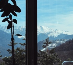 В номерах требуется уже небольшой ремонт, так как чувствуется изношенность и «усталость» интерьера и декора со временем: старый ковролин, полотенца, были не в идеальном состоянии шторы (то ли с очень маленькими следами грязи, то ли с очень маленькими дырками). Но мне гораздо более важен был комфорт, пища и отношение персонала, я не придираюсь к шторам или чему бы то ни было. Уборка была каждый день. По классике: карта от номера является пропуском на поднятие на фуникулере на поляну 960. Также ходит трансфер с поляны 540, однако во второй приезд в мае расписание трансфера не дали: возможно, что уже не ходил…Прикрепляю фото из ресторана и виды из номера. Хочу возвращаться! И думаю, что я вернусь. Ещё раз спасибо персоналу за человечность и помощь при позднем заселении.