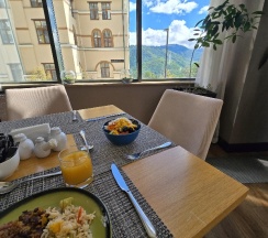 Замечательное место, даже с учётом небольшой стройки. Персонал доброжелательный, завтраки прекрасные, номер был достаточно крупный, чистый. Воздух свежий, прогуляться есть где. Канатка 540-960 включена в стоимость отеля, что позволило гулять и ужинать на обеих высотах не думая о том, что на 960 надо обойти все за один раз