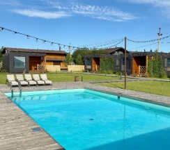Отличное место для отдыха, как уединенного, так и большой компанией. Стильно, современно, приятно! Беседка возле ресторана - шумная, не рекомендую. Слышен громкий шум работающей вытяжки ресторана. Бани супер! Бассейн, сауна, хамам, все просто отлично. Убранство строений тоже на пятерку. Домики для проживания укомплектованы всем необходимым для комфортного отдыха. База отдыха оставила самые приятные впечатления.