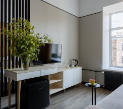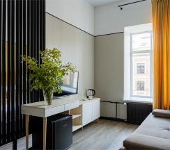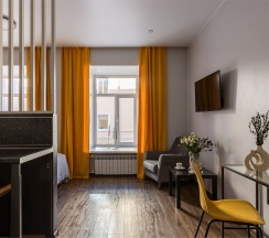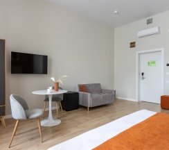 Звукоизолированный номер-студио с мини-кухней и кондиционером.