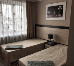 В данный момент находимся в двухместном номере этой гостиницы. Номер чистый, очень просторный, кроме двух кроватей есть ещё больший угловой диван и кресло. Комплектация номера полностью соответствует и даже превосходит класс гостиницы. Очень внимательный и доброжелательный персонал. Чувствуем себя, как дома! Большое спасибо за хороший приём! Всем советуем это место!
