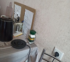 Удобное расположение, в шаговой доступности от аэропорта. Номер чистый, всё для проживания есть в номере,телевизор,микроволновка,холодильник, душ и туалет.