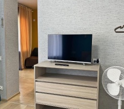 Останавливались на сутки по пути с Хабаровска. Апартаменты очень даже ничего. Всё понравилось, однокомнатная квартира. Большая кровать и раздвижной диван. В апартаменте телевизор, СВЧ печь, холодильник, чайник, гладильная доска с утюгом, фильтр для воды. Так же есть балкон, самое главное есть кондиционер. Кстати, все окна и балконная дверь оснащены антимоскитными сетками. Есть вай-фай. В апартаменте чисто, постельное чистое. И что не маловажно, окна на темных жалюзях. Сан узел совмещен с ванной, есть стиральная машина автомат. Огороженный двор. Всё классно. Рекомендую останавливаться здесь. Цена на двоих 3’377 (два комплекта белья итд) Цена соответствует ожиданиям. Ещё одно, на балконе столик со стулом, пол на балконе с ковралином, приятно ходить, а не чувствовать хруст бетонной крошки. В общем 👍🏻