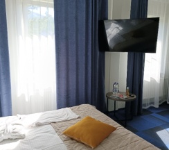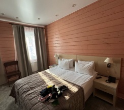Очень приятная атмосфера в отеле. Просторные номера с красивым видом. Удобные кровати) В коридорах очень приятно пахнет. На территории есть баня, сауны, мангал. Всё для того, чтобы хорошо провести время. В номерах представлен мини - бар с хорошим ассортиментом! Обязательно вернёмся сюда вновь!