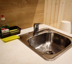 Двухместный номер со всеми удобствами. В номере 2 односпальные кровати, телевизор, кухонная зона, оснащенная электроплитой, микроволновкой, электрочайником, холодильником, набором посуды.