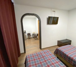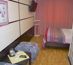 Услуги и удобства:душевая комната, туалетные принадлежности (мыло, шампунь, гель, зубные наборы), фен, тапочки, полотенца, шкаф/гардероб, холодильник, электрический чайник, бесплатный Wi-Fi, TV