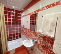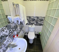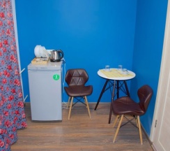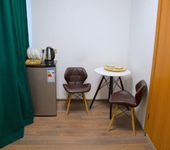 Услуги и удобства:душевая комната, туалетные принадлежности (мыло, шампунь, гель, зубные наборы), фен, тапочки, полотенца, шкаф/гардероб, холодильник, электрический чайник, столовая посуда и приборы в ассортименте, бесплатный Wi-Fi, Smart TV