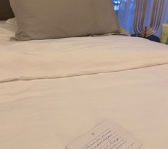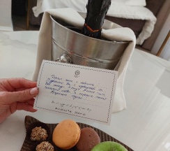 Представьте: возвращаетесь вечером в номер, а на кровати вас уже ждёт красивейшая открытка с самыми добрыми словами и конфетки! А по утрам нас часто встречал милейший пёсик — настоящий символ гостеприимства этого места!