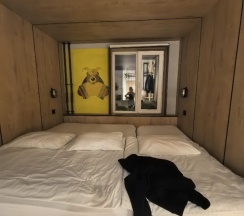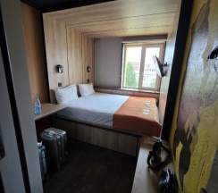 Проживаю в отеле уже несколько дней. Из плюсов: приветливый персонал, особенно понравилась администратор Ева(быстро нас заселила, на все вопросы и уточнения подробно ответила, помогла разобраться с приложением прачечной и скачать его), также из плюсов это то, что есть напротив отеля доставка еды, которая достаточно быстро доставляет еду, также в самом отеле есть завтраки, конкретно шведский стол, удобная прачечная на -1 этаже, круглосуточный бар, удобное приложение отеля для комфортного проживания в нём. Метро находится в шаговой доступности. Из минусов: плохая шумоизоляция и на этом пожалуй минусы заканчиваются…Также хотелось бы отметить интересный, стильный и молодежный интерьер отеля. Это прекрасное место для молодежи на кратковременное проживание или даже на долгосрочное. Спасибо за теплый прием, обязательно вернусь!