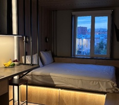 Уютный номер. Матрасы хорошие, удобные, постельное бельё поменяли через 3 дня, белье чистое, без каких-либо пятен. В душевой чистые полотенца, шампунь-гель для душа. В кухонной зоне необходимая посуда, плита, раковина, микроволновка и холодильник. Все очень компактное. Главное, очень чисто. Обслуживание на 5. Девочки не ресепшене замечательные, внимательные. Очень-очень понравилось.