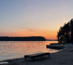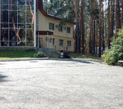 Хороший загородный комплекс, большая сосновая территория, ресторан отличный, завтраки-шведский стол. Жили в номере, в корпусе юбилейный, чисто. Ухоженая территория. Были не в купальный сезон, с воскресенья на понедельник, отдыхающих мало, из занятий только катамаран и прогулка по лесу, бани сауны и другие развлечения не заказывали. На один день подышать лесом отлично. Если на дольше, берите компанию, что бы со скуки не заскучать, хотя если нужно уеденение отличное место. Живут 3 дятла, можно за ними наблюдать, красавцы. Природа, закаты, водная гладь красота.