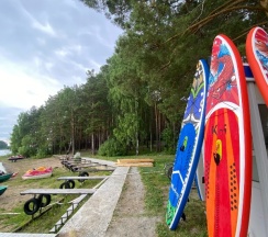 Чудесное место для семейного отдыха. Территория достаточно большая, чистая, ухоженная, много зелени, птички поют, воздух чистейший 😍 на берегу есть возможность взять в прокат спортинвентарь.