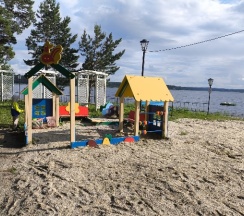 Отличная природа, пляж оборудованный лежаками, песок, детская площадка. Заехали в коттедж Охотничий, шикарный большой дом с двумя отдельными комнатами, кухней гостиной, террасой, душевой, В общем все есть для семьи с ребёнком и кулер, чайник, посуда., но за четыре дня домик ни разу не прибрали (.