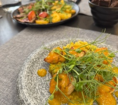Ужинали в ресторане, очень долгое ожидание, ОЧЕНЬ. Суп, салат и даже напитки несли минут 30, вкус блюд на 3 балла.
