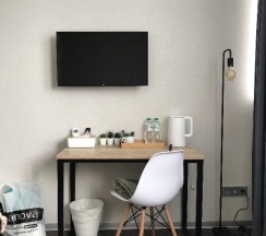 Отель ну очень хороший! Начиная от замечательного администратора , с которой очень приятно разговаривать , заканчивая номерами , все продумано до мелочей для комфортного отдыха , в номере есть : утюг, гладильная доска, кондиционер , телевизор, шампунь, гель для душа, одноразовые щетки и пасты, и фен , все очень чисто и приятно пахнет. Сам дизайн отеля очень красивый, вернемся еще раз❤️
