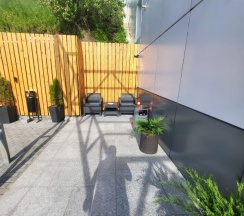 Отель очень понравился, чистый ухоженный, современный, кровать шикарная, постельные белые, чистые, качественные, халаты, есть специальные места на этаже курящим. персонал очень приятные девушки. На первом этаже есть зонты, кофе итд. Всё до мелочей придумано, комфорт на высшем👍🏻единственный минус был, что при уборке комнаты возможно не допылесосили или как, ну вообщем это не критично )