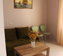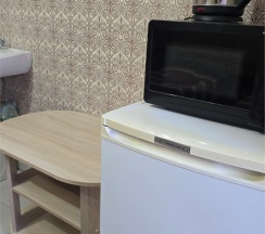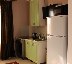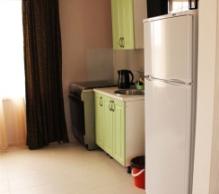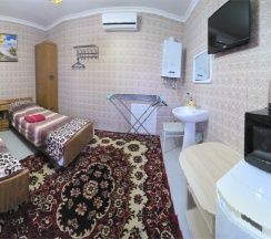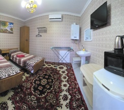 Двухместный номер оснащен всем необходимым для приятного отдыха, своя микроволновая печь, чайник, холодильник, кондиционер, телевизор, столик, умывальник в номере. Душ и санузел во дворе.