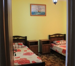 Проведите выходные с близкими и родными у самого берега моря!!! Номер семейный 3 это отличный выбор для тех кто ценит удобства. В номере 4 односпальные кровати, 1 диван раздвижной, телевизором, кондиционером, шкафчиком, и двумя не раздвижными креслами для посиделок, книги. И самая главная изюминка этого семейного номера, это свой огороженный дворик с беседкой покрытой розами, просторная отдельная кухня во дворе со всем необходимым. Раздельные туалет и душевая во дворе. И аромат во дворе от благоухания цветов. В семейном номере спокойно разместятся 6 человек.