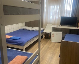 Номер подойдет для размещения 3 человек. Спальные места представлены в виде 1 односпальной и 1 двухъярусной кроватей. Есть собственная ванная комната с душем и санузлом. Для пользования доступны: телевизор, Wi-Fi, холодильник, стол, стул и шкаф. Предоставляются постельное белье и полотенца.