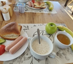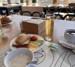 Завтраки в формате "завтрак-бар": на завтрак несколько блюд + напитки (чай, кофе, соки), блюда выдают через барную стойку, будешь есть - берёшь, не будешь есть - не берёшь! Все просто, но сытно. Одно из блюд почти всегда каша...