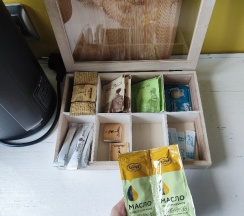 Особенно порадовал набор на кухне : кофе, зелёный/чёрный чай, сахар, масло, шоколадки.