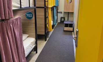 Останавливались в хостеле в начале августа, ночевали в двухместном номере. Приехали ночью , заселили быстро. Номер небольшой, но уютный, плотные шторы , душевая кабина вместительная. Чистенько , диспенсеры есть, предоставили чистые белые полотенца.