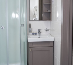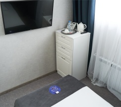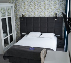 Уютные номера со светлым, классическим интерьером площадью 16 кв.м. Номер оснащен двуспальной кроватью с ортопедическим матрасом. Ванная комната с душевой кабиной располагает всем необходимым: душевые принадлежности, полотенца, халат, тапочки. Номер прекрасно подойдет как для одноместного, так и для двухместного размещения. Возможно бронирование номера с 2 раздельными односпальными кроватями.