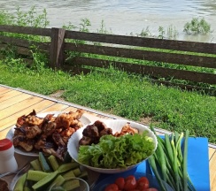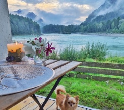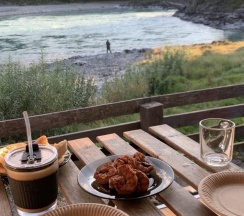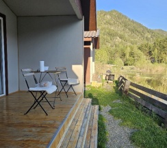 Заехали провести день перед дальней дорогой, в итоге остались на 3 ночи. Было бы свободно, остались бы еще. Отличное соотношение цены и качества. Цена более чем доступная, при этом условия очень комфортные. Чистый и уютный домик, приветливая хозяйка, вежливая женщина администратор. Атмосфера тихая, деревенская— идеальное место, чтобы отдохнуть от города. Переодически к нам приходил ласковый кот, видимо уже прикормленный) Рекомендую всем, кто хочет недорого и комфортно провести время живя прямо у реки