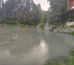 Тихая и небольшая база, на территории 4 домика и баня-бочка. Берег Катуни сильно заросший в этом месте, часто занят сплавщиками, очень много уточек. Жили в большом домике, понравилась отличная терраса с креслами и качелями, на кухне есть все необходимое (посуда, мультиварка, чай, сахар, масло и т.д.), внутри есть отдельная комната-спальня с дверью, очень удобный диван, белоснежное белье, вид на Катунь хоть и закрыт частично домиками на первой линии, но в целом видно! Расположение удачное: рядом остановка, 3 магазина, в 3 минутах ходьбы отличное кафе, в 5 минутах езды ресторан Loft, в пешей доступности Царская охота, речной вокзал и Камышинский водопад, очень близко Бирюзовая Катунь и Манжерок