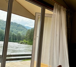 Шикарный вид на р.Катунь, уютно. Можно улучшить спальные места.