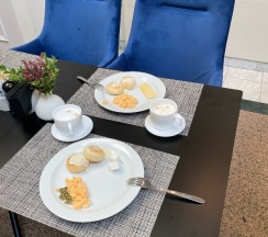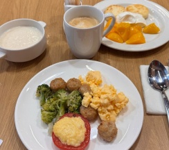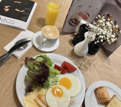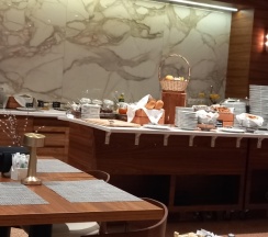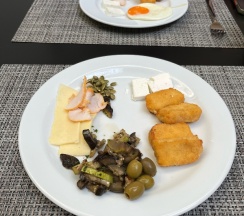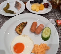Завтрак отличный, все вкусно; ужин по сету (на выбор три салата, вторые блюда и пирожное - все попробовали вкусно), но для ребенка не было вариантов еды, заказывали отдельно ₽ по детскому меню.