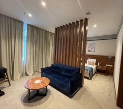 Чисто в номере, приветливый персонал. В уборной/душевой не хватает крючков для полотенец, пришлось сушить на стульях в номере. Инфракрасная сауна хорошая, дополнительно предоставляют тапочки, полотенца и косметический набор для душа, размер человек на 6, но очень холодный бассейн- не смогла искупаться, хотя собственно из-за бассейна мой выбор пал на этот отель. При отеле есть ресторан, кухня грузинская (я не очень ее люблю), месторасположение не очень, рядом только только Вкусвилл, узкие улицы, навигатор не работает, легко потеряться не зная местности. Внутренний интерьер очень интересный, имеется лифт. Улучшенный номер не соответствует фото, или не в тот заселили - конкретно отсутствовал диванчик в номере.