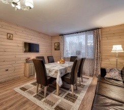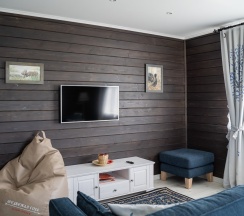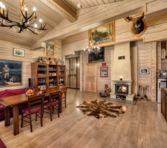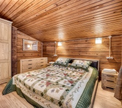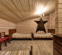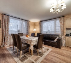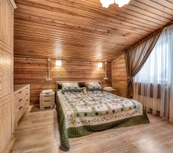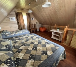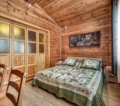 Этот просторный (160 м²) и по-домашнему уютный коттедж пленит своим неповторимым колоритом и самобытным духом охотничьего дома. Здесь есть все, чтобы с комфортом разместить 8-10 гостей, погружая их в атмосферу тепла и гостеприимства. Светлая веранда манит отдохнуть на садовой мебели, наслаждаясь тишиной и свежим воздухом. В сердце гостиной, словно символ домашнего очага, возвышается массивный стол, вокруг которого так приятно собираться у пылающего камина. Три уютные спальни готовы принять до десяти постояльцев.