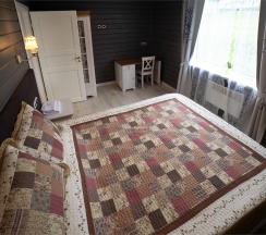Всё здорово красиво, уютные домики, но не знаю как для других людей для меня удобная кровать, матрас, подушка, одеяло многое решают. Кровать узкая, подушка как пружина не давала шее отдохнуть, одеяло тяжёлое 2 ночи подряд не смог выспаться просыпался от духоты не смотря на открытую форточку.
