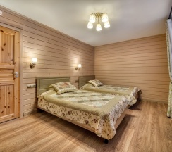 Это не просто дом, это обитель чудодейственной силы и целительного жара, скромно именуемая – баня. Дом-баня вторит великолепию Больших домов Парк-отеля, встречая гостей просторной гостиной, обставленной с душой и вкусом, где кухонная зона ненавязчиво вписана в интерьер. Сердце дома – уютная спальня с двуспальной кроватью, а из гостиной открывается дверь в парную, где можно творить собственные ритуалы оздоровления. В гостиной расположен диван для двоих гостей, также по запросу предоставляется раскладушка для дополнительного места.