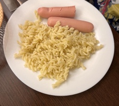 В кафе вкусная рисовая каша с сосисками на завтрак😚